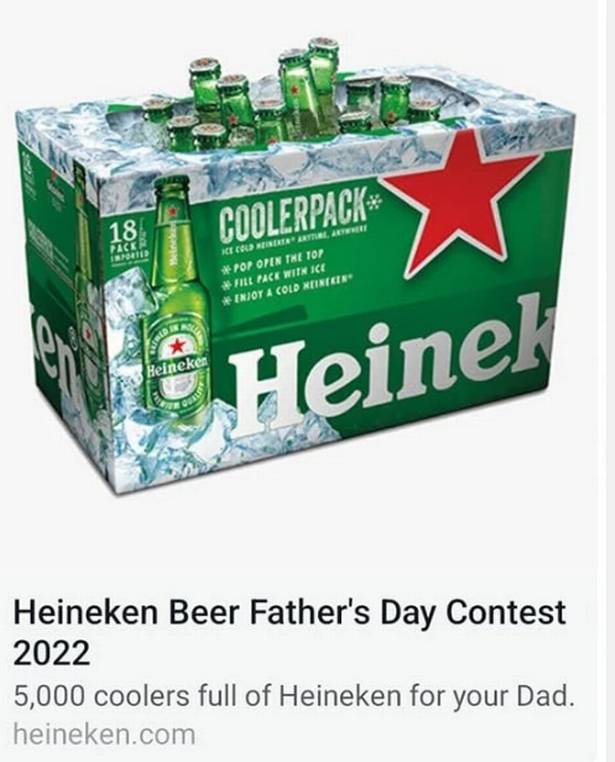 The fake contest claims the Heineken Beer Fathers Day Contest 2022 will.